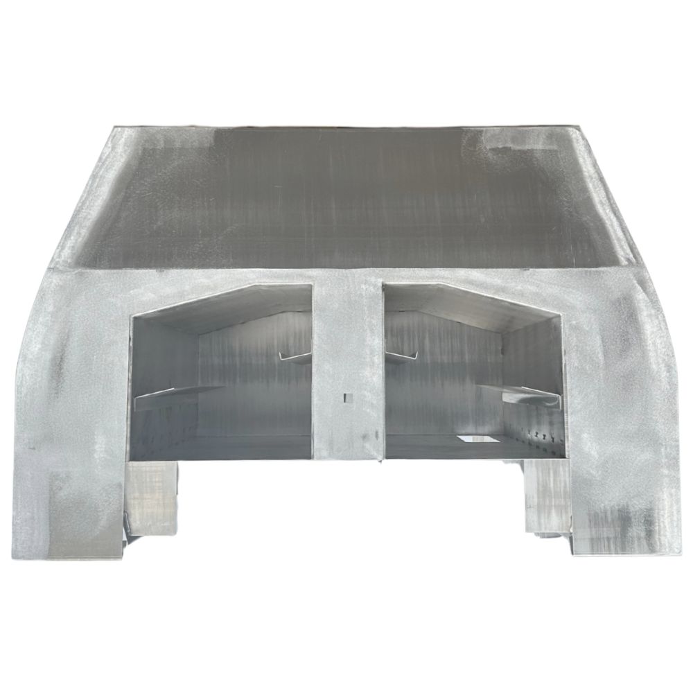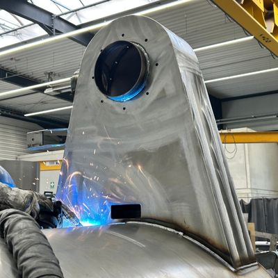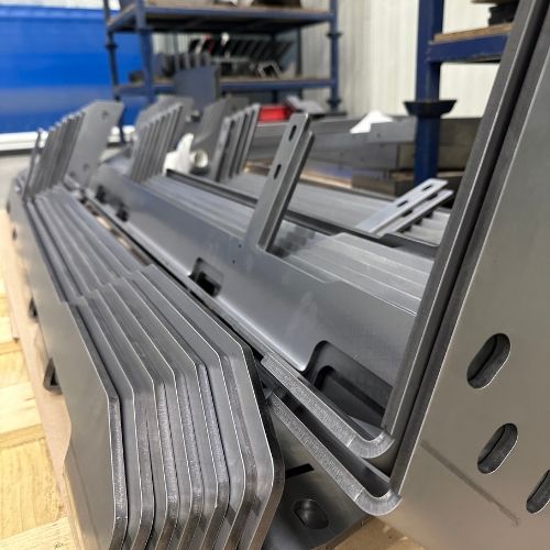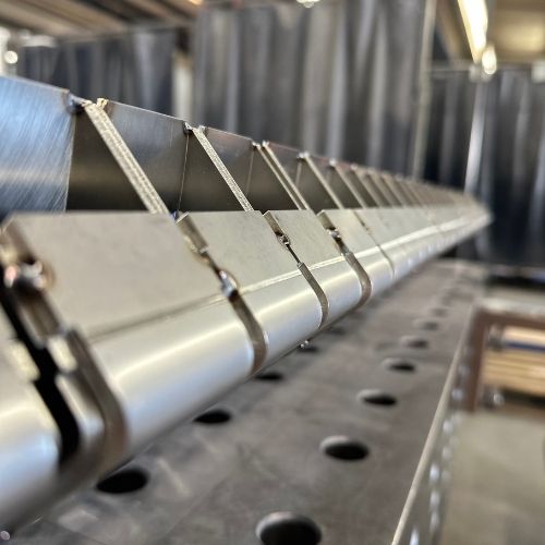 Bauteil aus Stahl mit Pulverbeschichtung und Edelstahlverzierung.